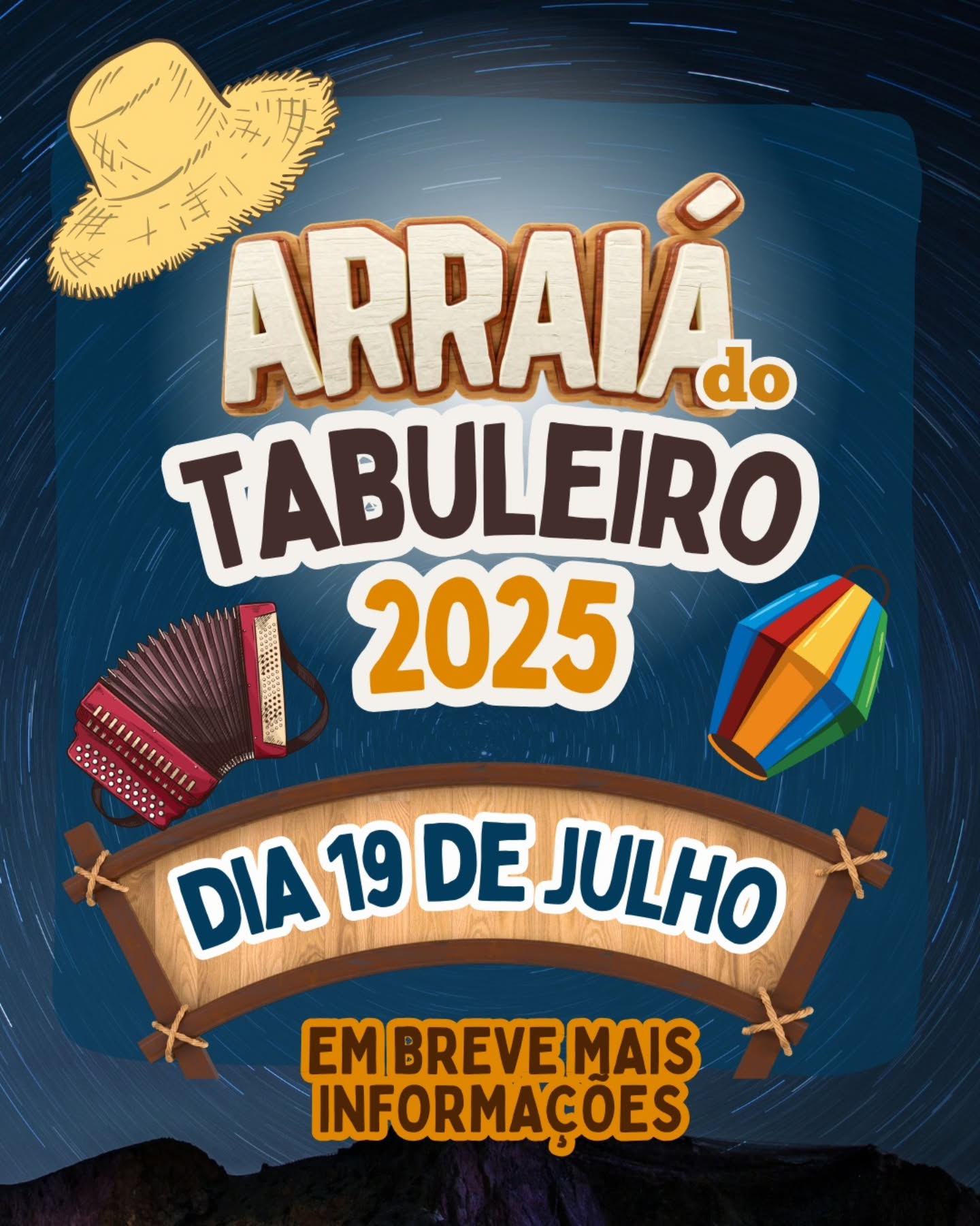 Vem aí o Arraiá do Tabuleiro 2025 com muita alegria, música boa, comida típica e aquele clima gostoso de festa junina que a gente ama! 😍🔥